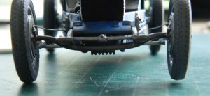 Tamiya ends the differential cover too soon at the underside. I extended the underside of it using .020″ (.508mm) flat styrene. Once the glue sets up completely I’ll fair the forward edge the forward edge of the plastic I just added to blend it with the differential cover: