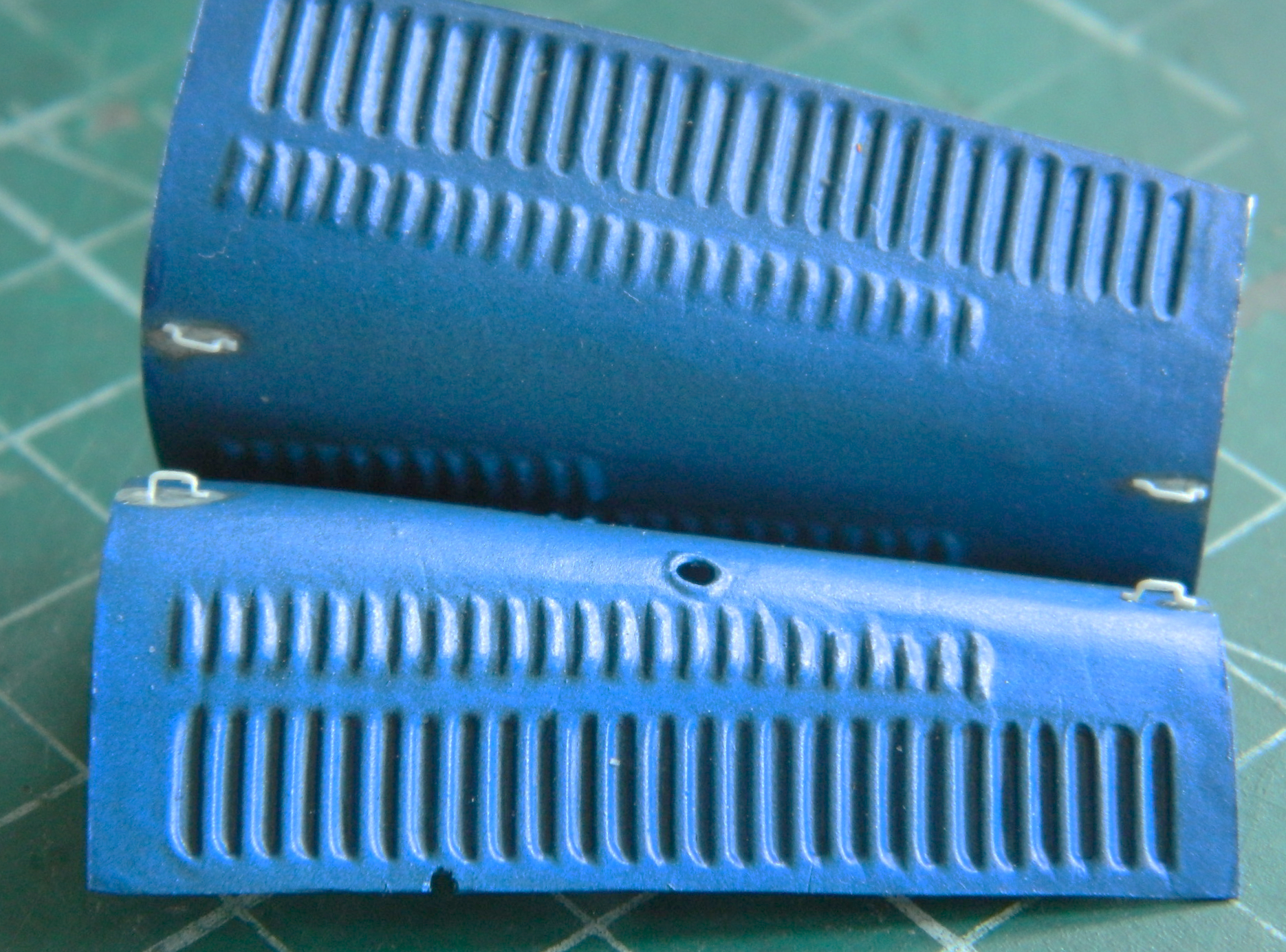 The rear and front cover will have bolt heads added later. For now I have to get the missing details added to the front cover. That started by sawing off the bullet-splash lip:
