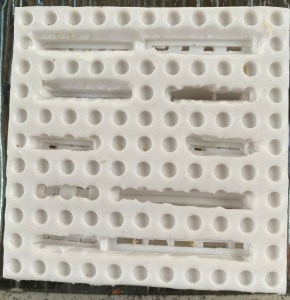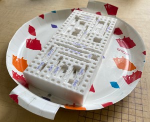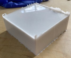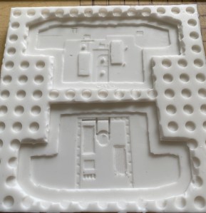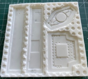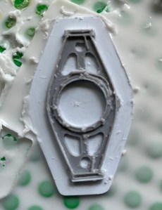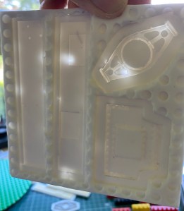 And while I was dealing with that little puzzle, I cut part PUR45, which is the platform the box mounts onto, from the pouring block. Did I mention warm hands and flexible-when-warm resin?: