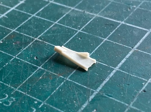 Getting that part in the lower right of the above photo cut away from the pouring block and cleaned up was another exercise in trying to trim something with the consistency and structure of over-cooked spaghetti. (This is fun, right? This is why I do this stuff, right? Right?!)