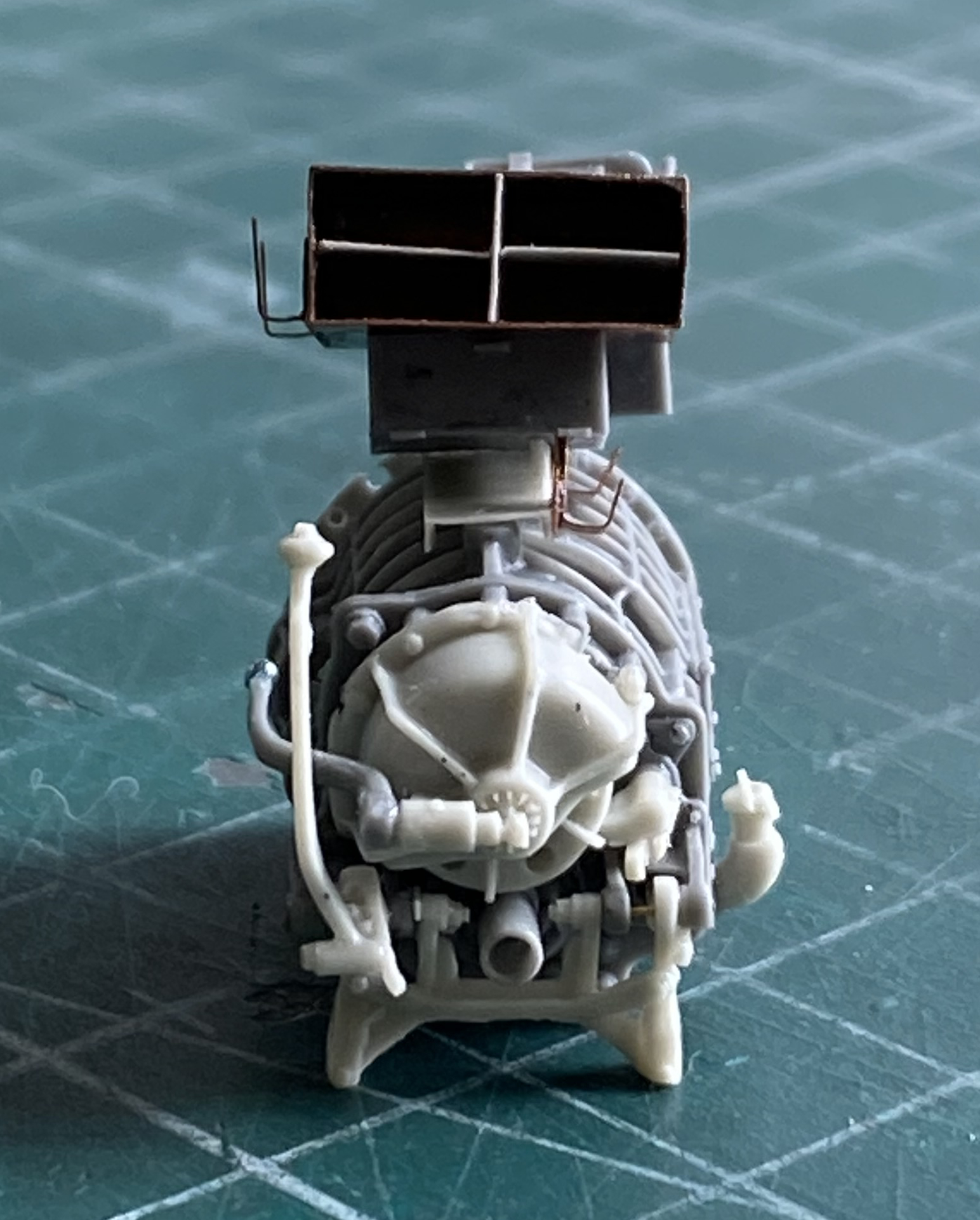 There are a few other parts you need to add if you’re after a really detailed engine. You’ll need to add the end of the throttle linkage to the carburetor (a small piece of wire, nothing involved as most of the throttle linkage lives under the engine and can’t be seen) and a fuel line to the fuel pump (again, I resorted to .010″ (.254mm) solder for that).