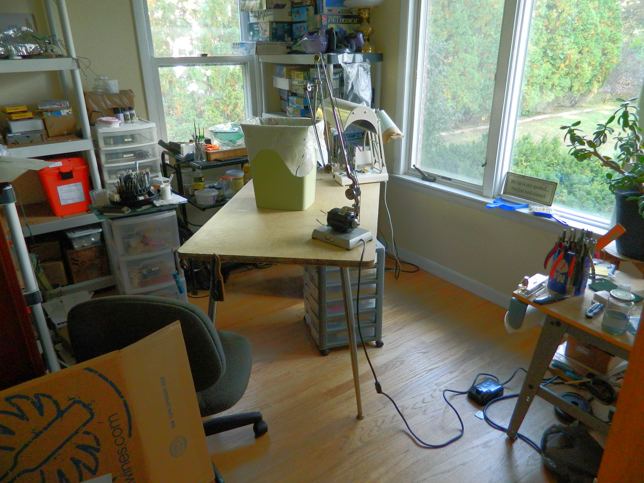 Even though my shop has no carpet that would morph into the dreaded Carpet Monster, small parts are SMALL. Many hours are spent per build crawling around looking for what the “tick” of my tweezers have told me has departed. And when I go looking for the part, I go looking for the partup to and including moving EVERYthing: