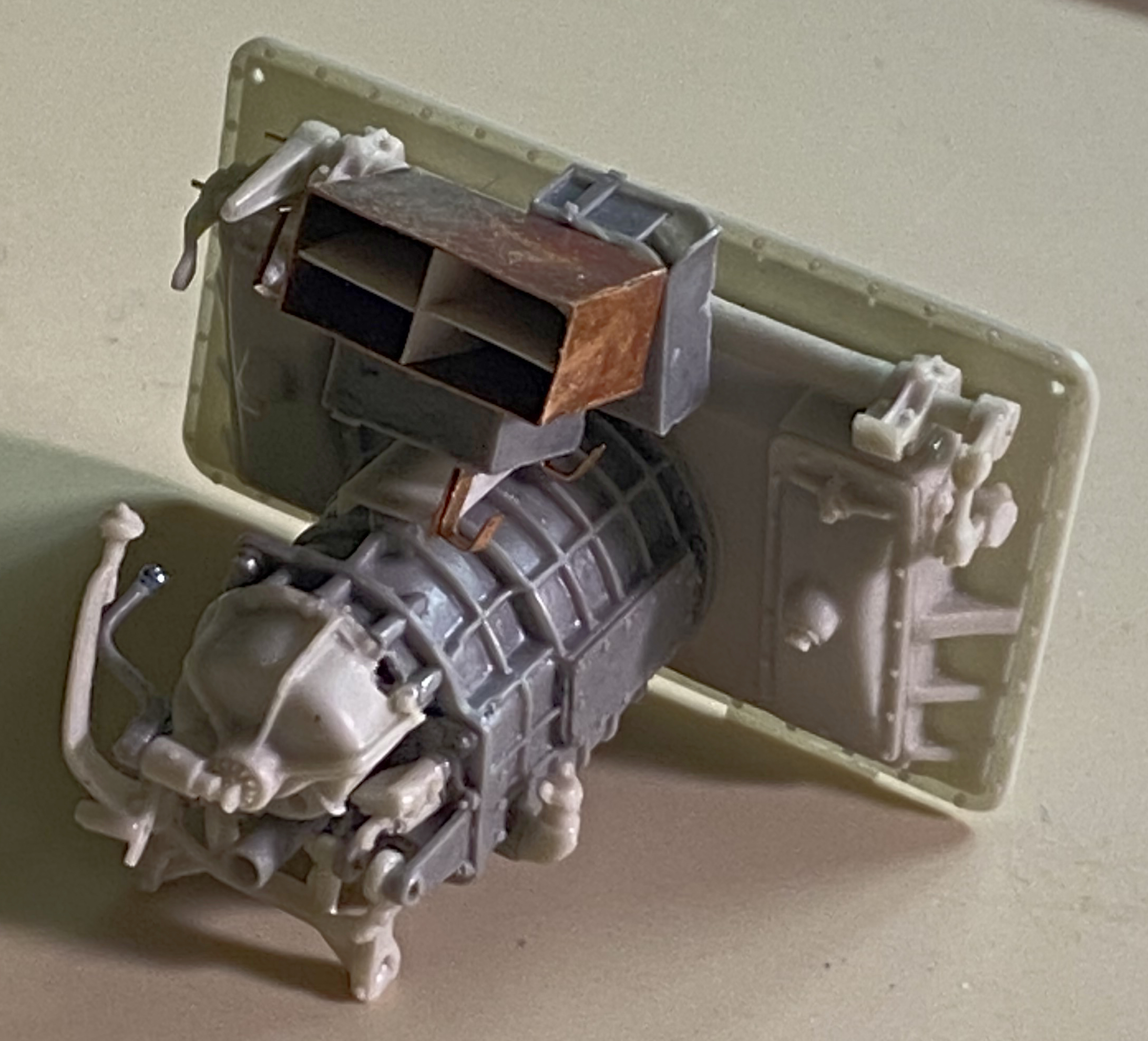 I used .020″ (.508mm) styrene for the lower engine access plate (which will also get bolts added):