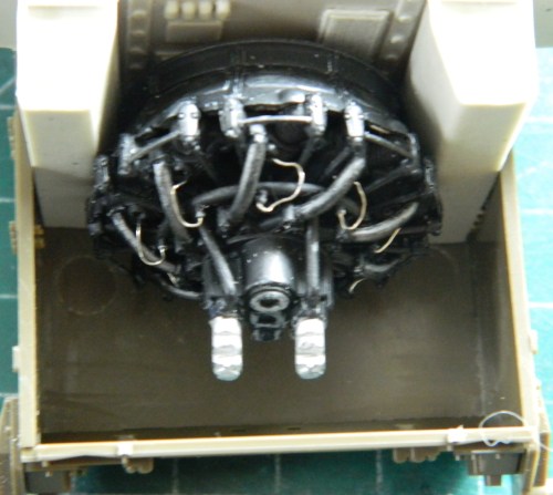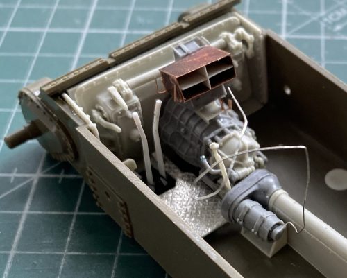 I copied some of the engine bay details from Mini-Art’s M3 Lee (Early). When I cast the floor, somehow I failed to notice that (what I think is the oil reservoir) has a substantial bubble: