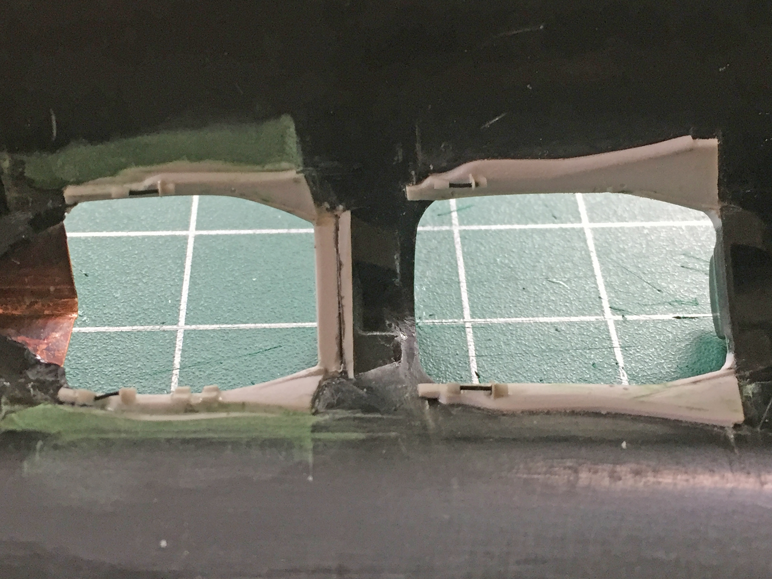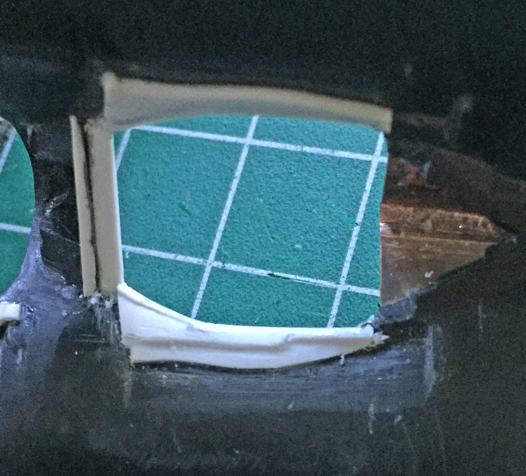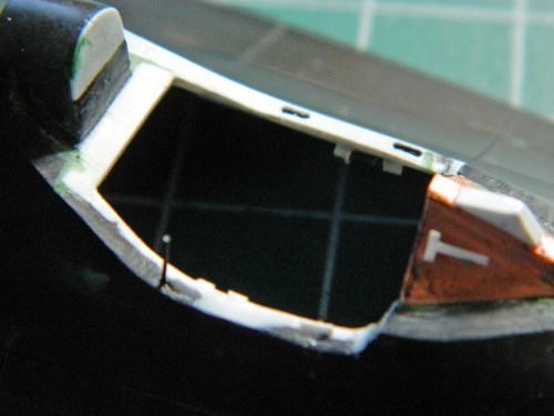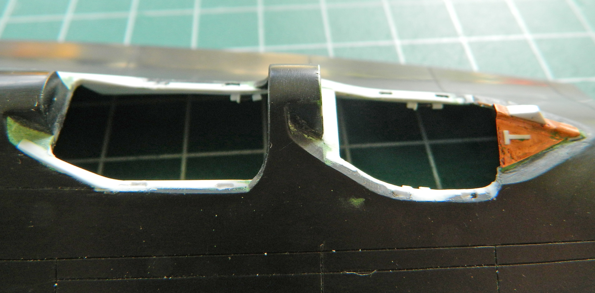 Having gotten all four sills to (relatively) fit, they were glued into position. There was a small gap at the edges of all the sills where they (relatively) met the side of the cockpits. That gap would need to be filled.