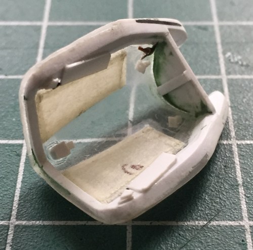 There are pronounced structures inside the canopies that the kit’s parts don’t have. They’re necessary to have them so that started with a job that I REALLY can’t stand…putting a bulkhead inside a curve. Tedious. Tedious. Tedious. But they’re not going to add themselves, so:
