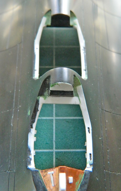 Once the glue cured overnight I removed the sections of the bulkheads that extend below the canopies’ edges.