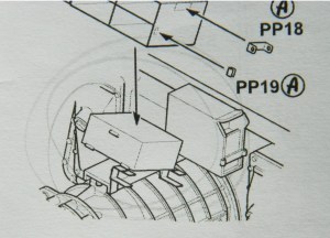 Last summer, I looked at CMK’s website to see if they had any more of these interior sets and they didn’t. That’s why I made copies of the one set that I had and why I’ve been trying to avoid using the PE that came with the set. But the next thing I had to make was provided for in this set in PE. It’s one thing copying a basic or simple shape on shim stock. It’s a different thing when the shape is neither simple nor basic. So four months after the last time I checked, I went back to CMK’s website to see if these sets were still being produced. Yes, they are! (Wish I’d known that before I spent more money than I care to mention on molding rubber.) Instead of making an inferior copy of the PE part, I used the PE part (now that I know I can get more):