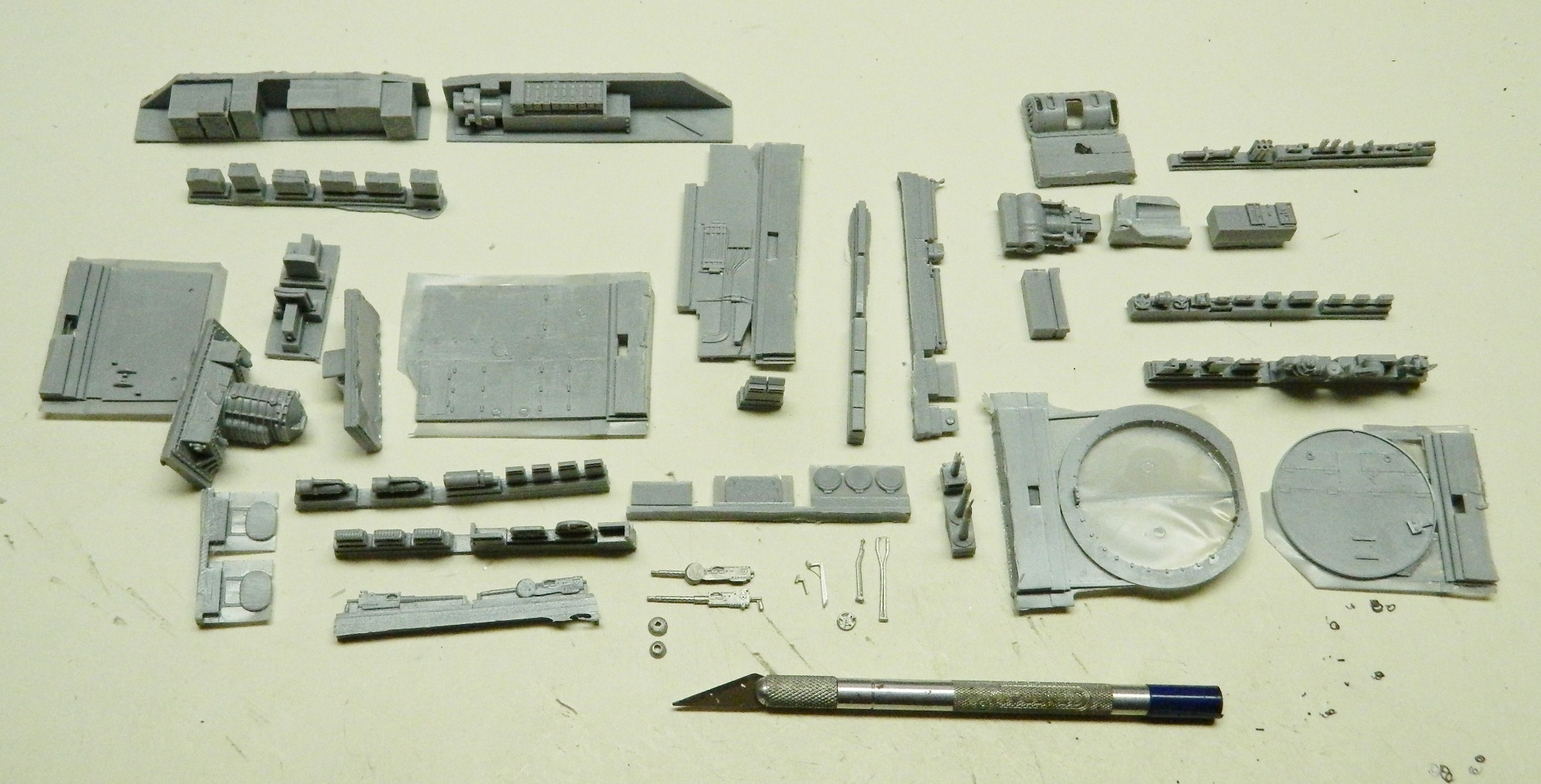 I ordered another AM resin set for the crew compartment. Wet-stowage Shermans had a very different interior (the first one I bought was for a dry-stowage tank). Stowed ammo was kept in water-filled boxes so that a (highly likely) penetrating shot didn’t ignite stowed ammo (which made the tank explode and burn). This set has not only the fighting compartment details but also the turret details: