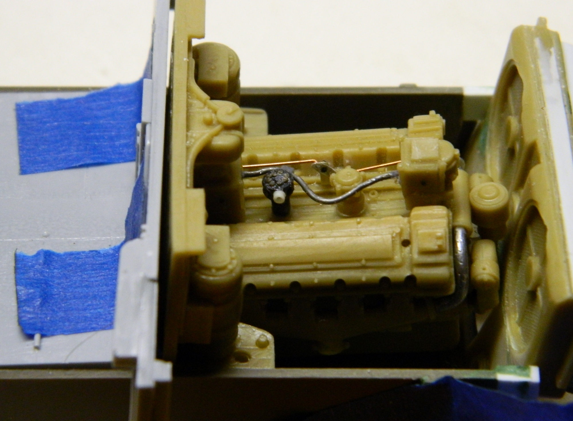 Once that was attended to, there are more engine details to add. Next up are the cooling manifolds that sit on top of the engine to each side of the carburetors, are evident, and although tubing came with the detail set to replicate them, they were nowhere near sufficient. These are made from .038″ (.965mm) styrene rod: