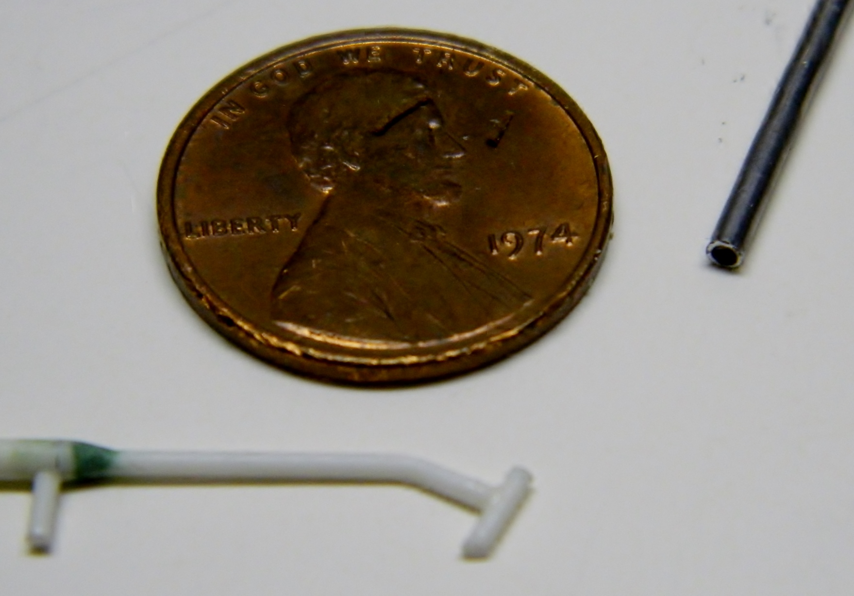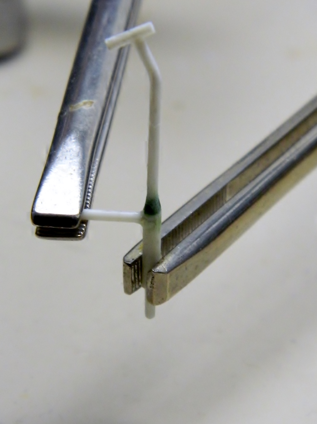 Also quite visible is the dipstick so I used some scrap sprue, heated and stretched it, and glued together the t-shaped dipstick:
