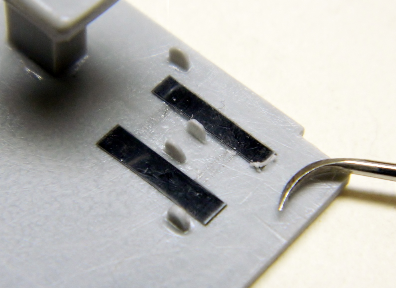 The next day after it had cured completely, I popped the new detail out of the foil, and then trimmed, thinned, and glued into a more correct location: